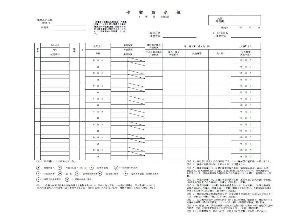 - 新規入場者調査票【全建統一様式参考様式第4号】