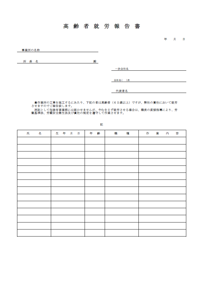 - 新規入場時等教育実施報告書【全建統一様式第7号】